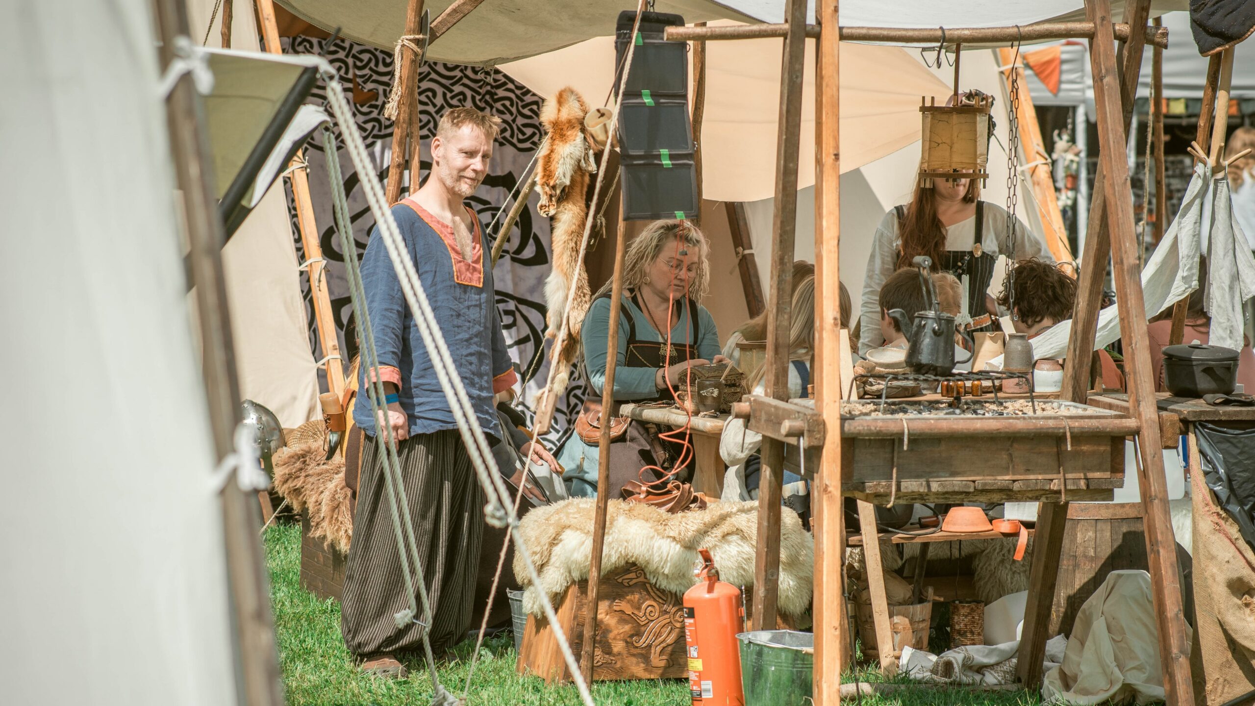 Järjestämme viikinkikylässä monipuolista elävöitystä. Viikingit ovat pukeutuneet aikakauden mukaisiin vaatteisiin ja koonneet yhteisöllisen viikinkikylän muiden viikinkiseurojen kanssa, kuten olisi tehty tuhat vuotta sitten markkinapaikalle saavuttaessa.