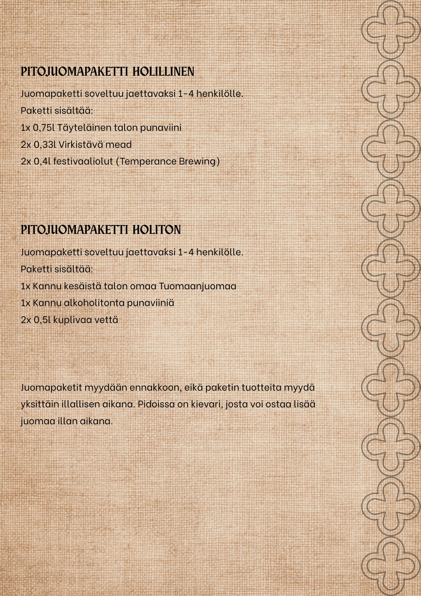 Juomapaketti (alkoholiton)  –  29€  –  Drink package (Non-Alcoholic)